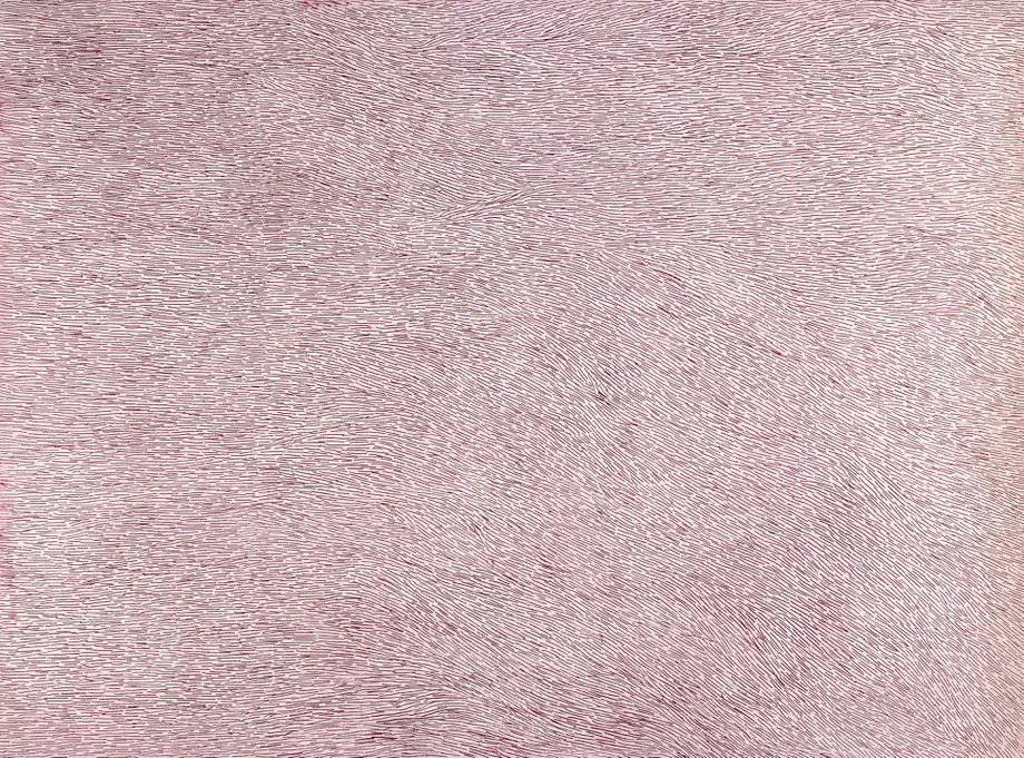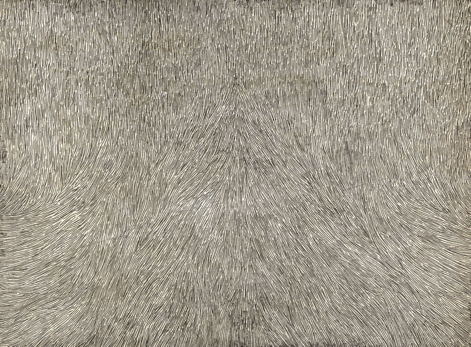 Je choisis les supports les plus fins, des papiers Bib. Tengujõ 12 gr, 9 gr et 6 gr afin de mettre en évidence, lors de l'impression, leur délicatesse, leur fragilité. J'utilise la technique de l'eau-forte afin d'obtenir une morsure profonde et précise du trait. Je privilégie un langage simple, dépouillé, rigoureux en répétant des traits sans épaisseur, sans recherche de tonalités. J'incise, j'inscris en poussant l'outil. Malgré sa rigidité, je le ressens comme le prolongement de ma main. La répétition du geste me permet aussi d'endurer cette résistance du cuivre, sa permanence dans lequel j'inscris ma marque, mon empreinte dans une tension. Chaque en engendre un autre. Le corps éprouve physiquement chaque trace, rythmant le temps par des espacements. Je me laisse porter cet errance du trait où l'imprévu est la règle. Parfois je vais à rebours de ce mouvement en travaillant à un endroit différent de la plaque. Dans ce cas des mouvements contraires se rencontrent et forment une tension. Un espace dynamique se crée spontanément jusqu'à ce que toute la surface soit saturée pour découvrir à la fin un ensemble mouvant qui développe des flux, des chemins graphiques inattendus. Avec la saturation du trait, l'ensemble devient une texture "inframince" avec des variations graphiques vibrantes qui apparaissent.